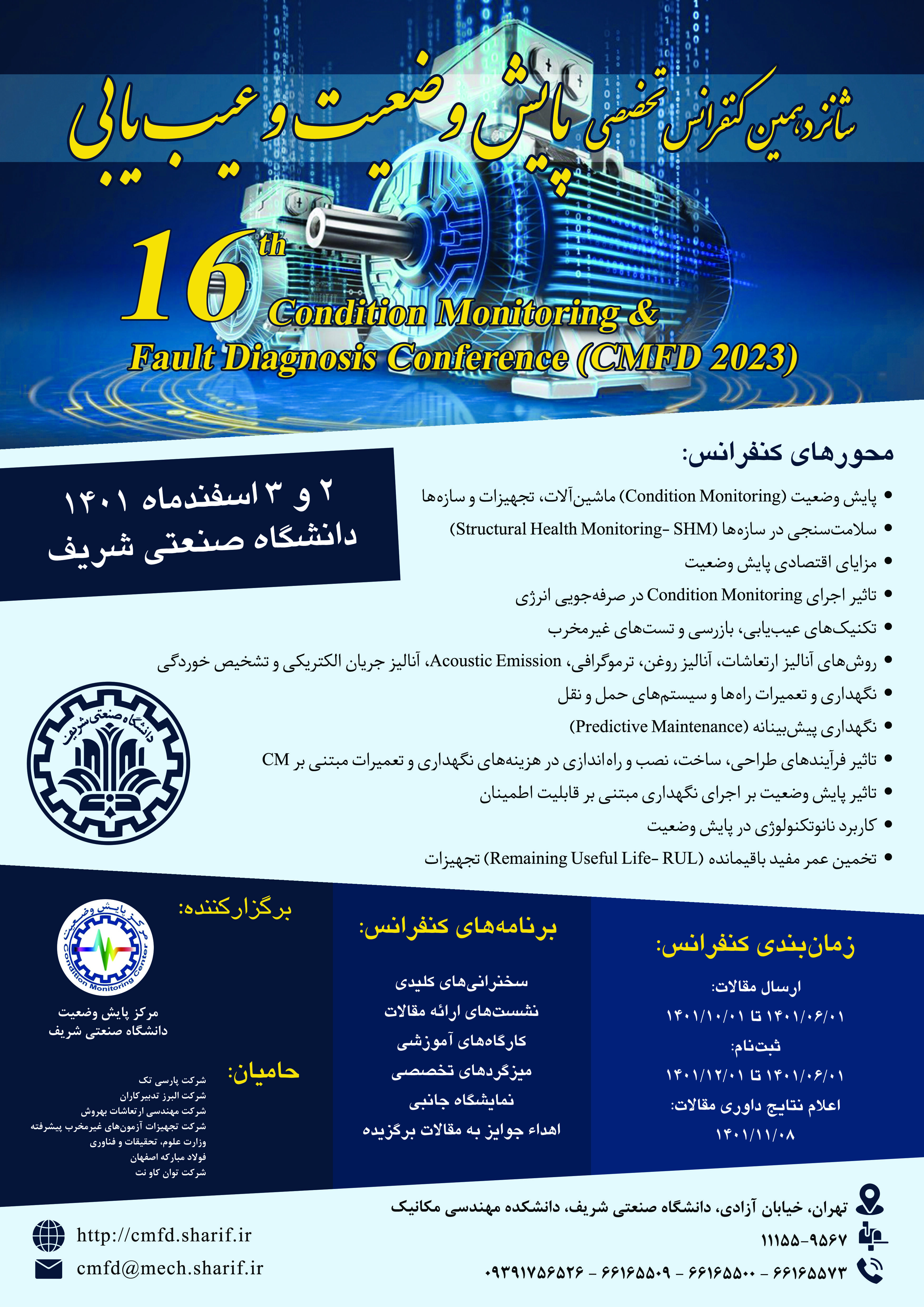 شانزدهمین کنفرانس تخصصی پایش وضعیت و عیبیابی (CMFD 2023)