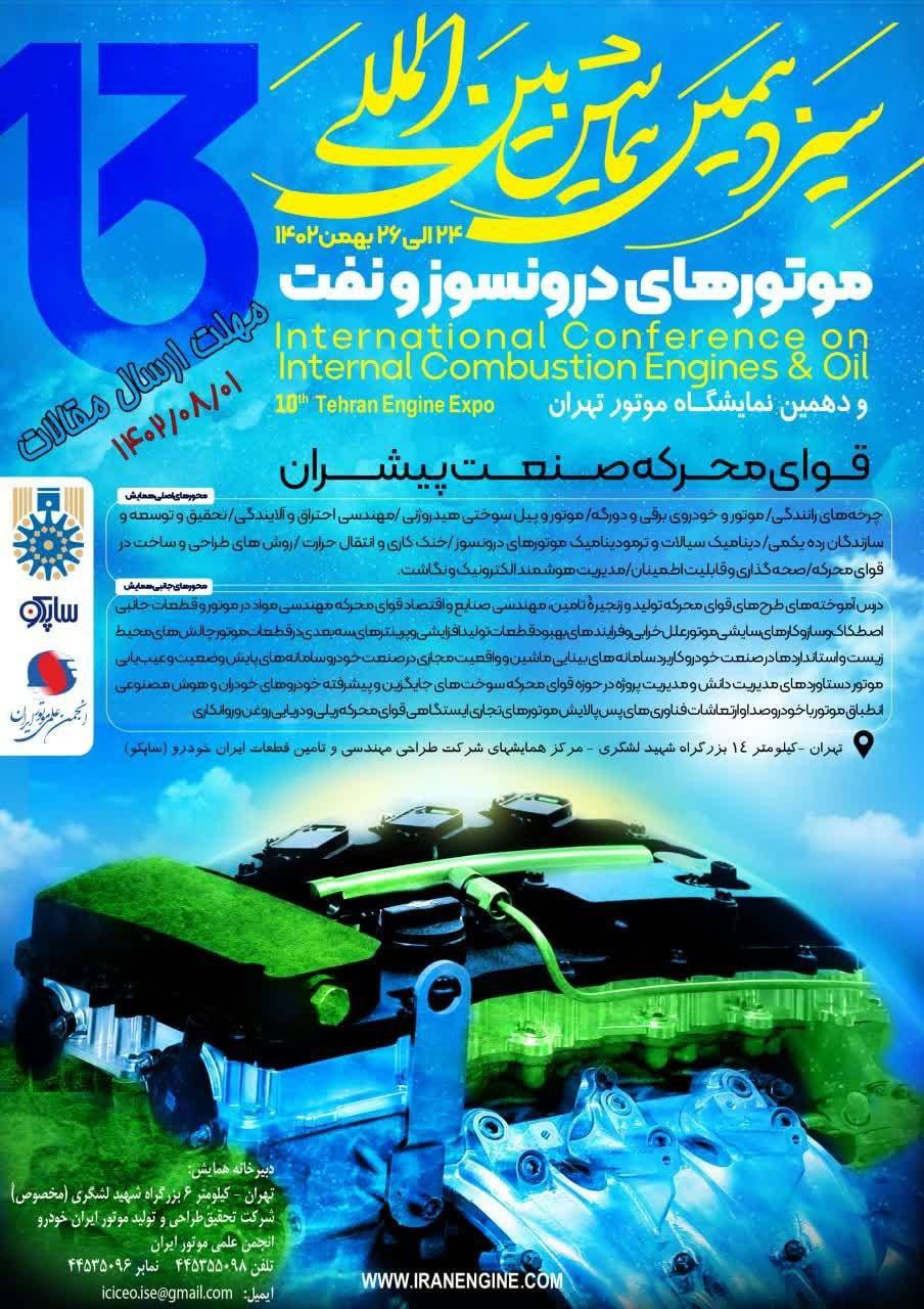 سیزدهمین همایش موتورهای درونسوز و نفت سیزدهمین همایش بینالمللی موتورهای درونسوز و نفت ۲۴ تا ۲۶ بهمنماه سال جاری در مرکز همایشهای شرکت طراحی مهندسی و تامین قطعات ایران خودرو برگزار میشود....