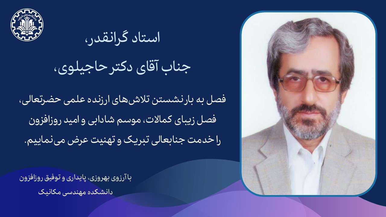 تبریک بازنشستگی جناب آقای دکتر علی حاجیلوی بنیسی، استاد گرانقدر دانشکده مهندسی مکانیک