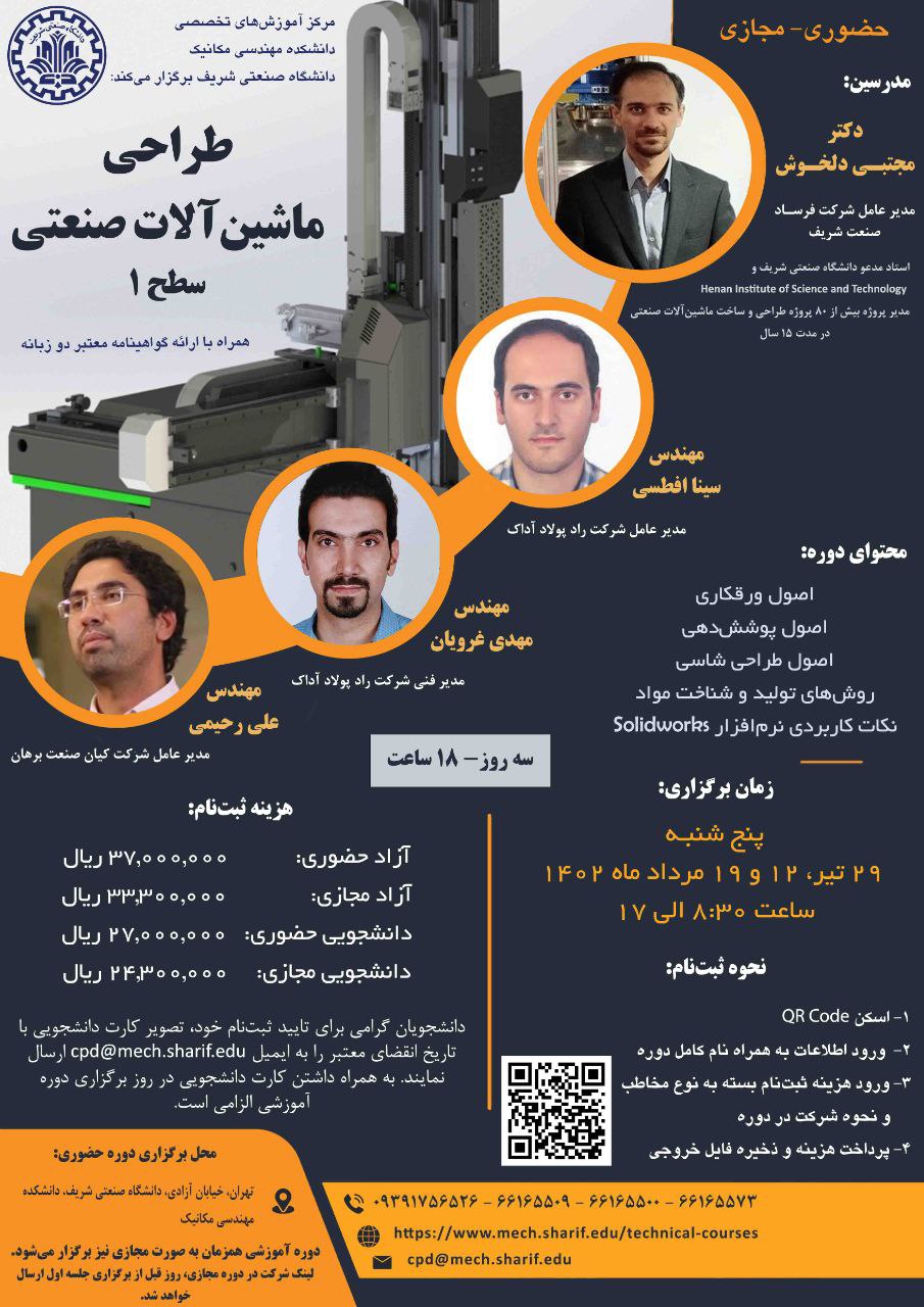 برگزاری دورههای طراحی ماشین آلات و تعامل دانشگاه با صنعت فایل تشریح دورههای «تعامل متخصصان دانشگاه با صنعت» و «طراحی ماشین آلات صنعتی» در پیوست آمده است.