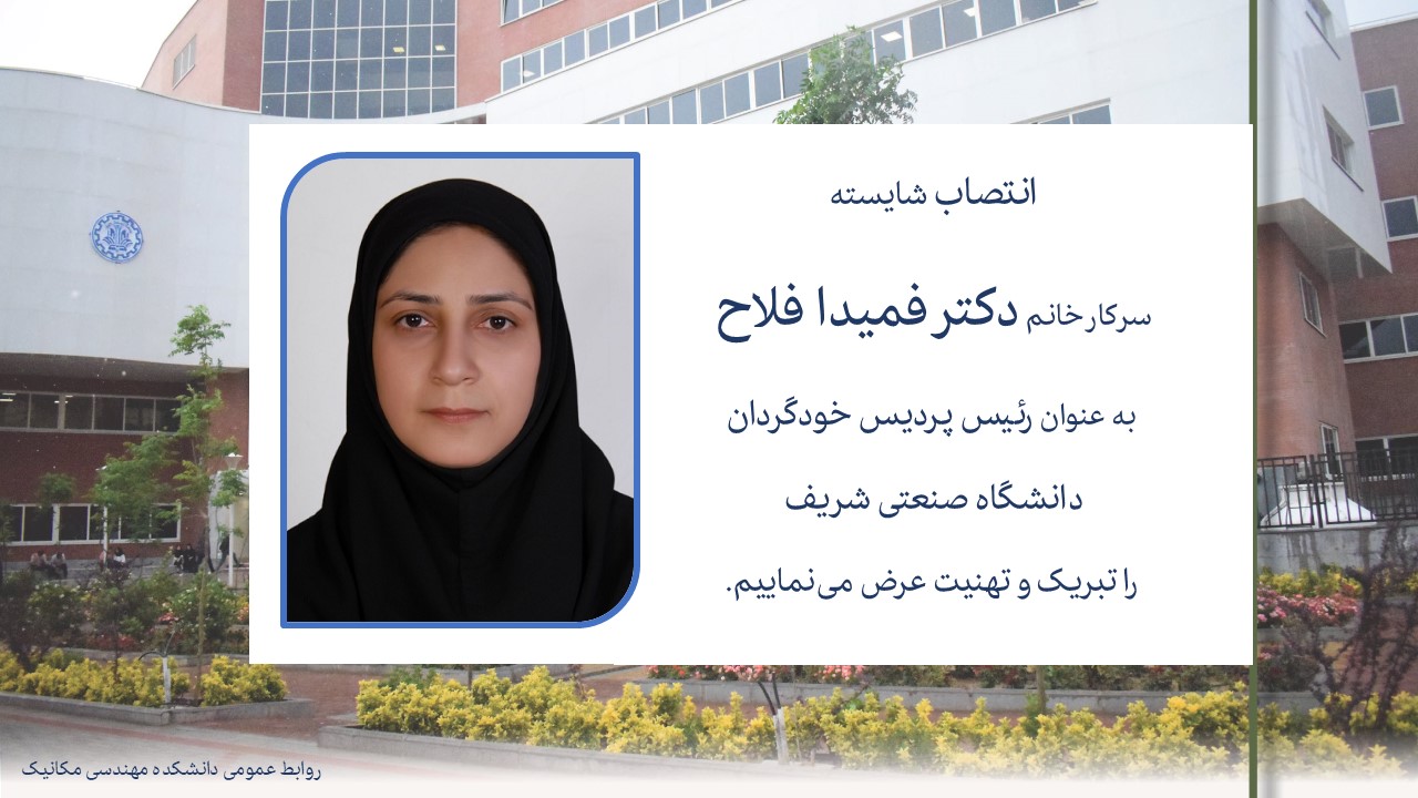 انتصاب سرکار خانم دکتر فمیدا فلاح به عنوان رئیس پردیس خودگردان دانشگاه صنعتی شریف