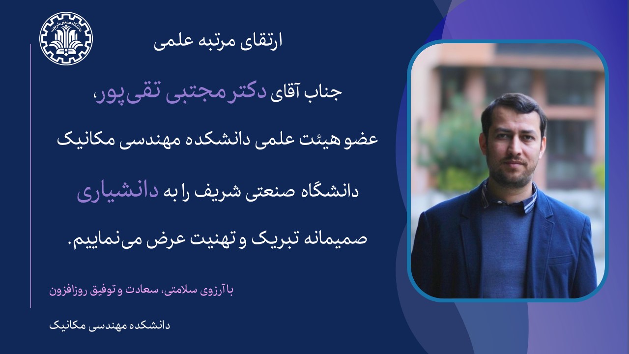 ابقای حکم جناب آقای دکتر علیرضا طاهری به عنوان معاونت آموزشی دانشکده مهندسی مکانیک جناب آقای دکتر عباس موسوی، ریاست محترم دانشگاه صنعتی شریف، طی حکمی، جناب آقای دکتر علیرضا طاهری را به عنوان معاونت...
