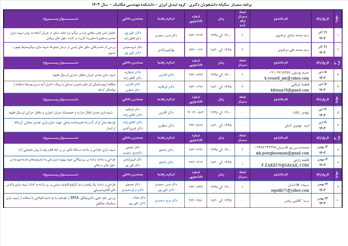 برنامه سمینار سالیانه دانشجویان دکتری - گروه تبدیل انرژی برنامه سمینار سالانه دانشجویان دکتری - گروه تبدیل انرژی در فایل پیوست قابل مشاهده است. دانلود فایل