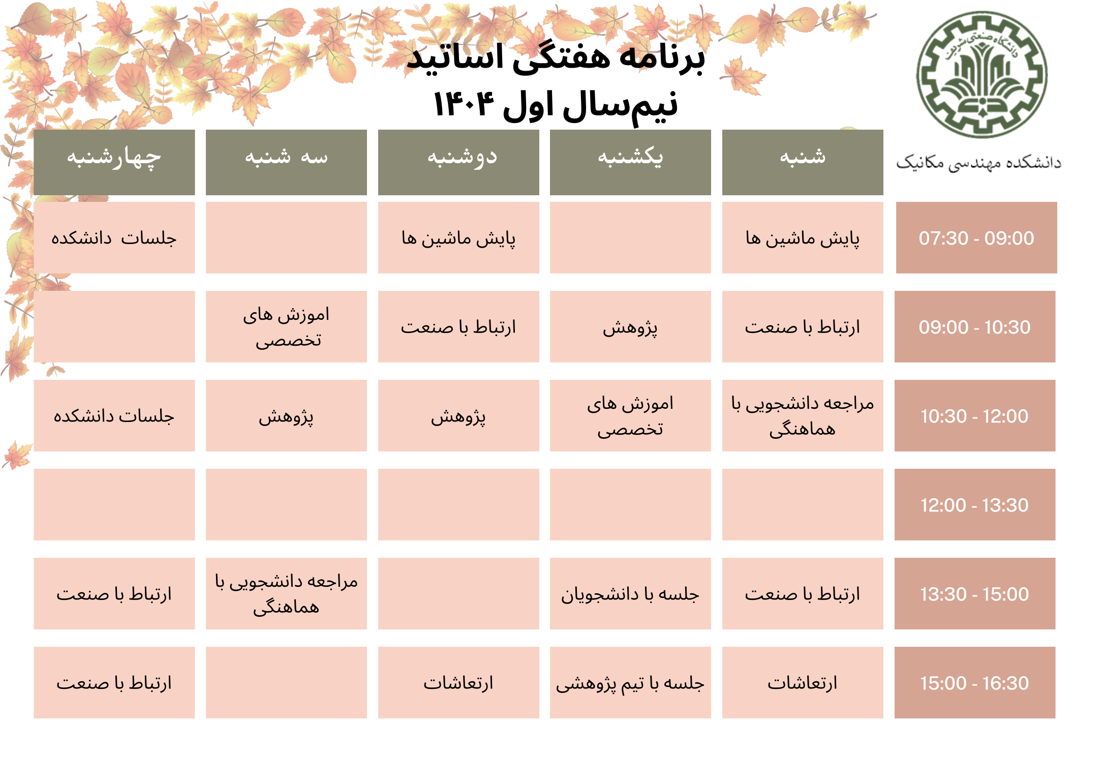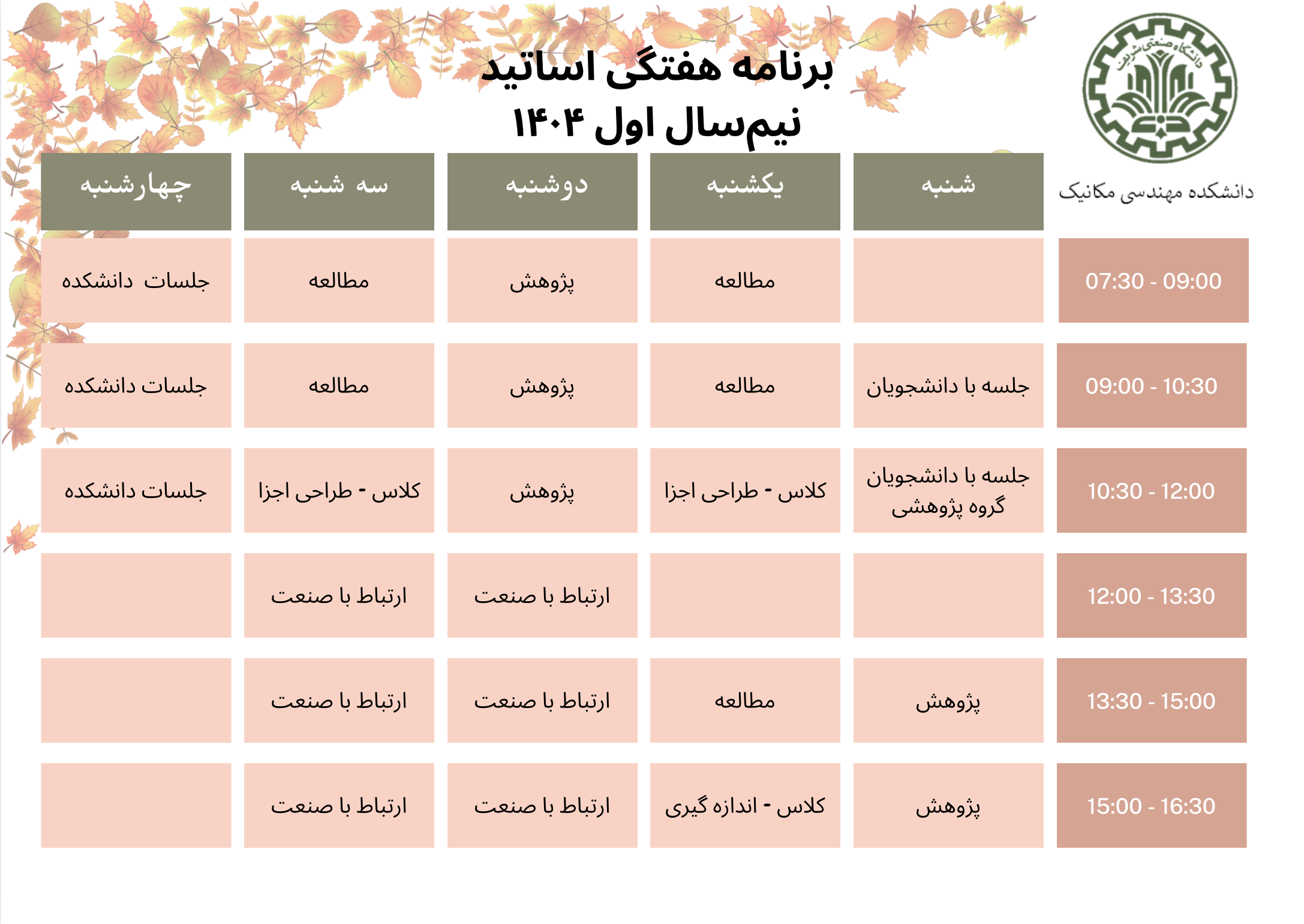 نام آزمایشگاه: سیستمهای روتور و یاتاقان، شماره اتاق آزمایشگاه: 314، شماره تلفن آزمایشگاه: 66165573(021)