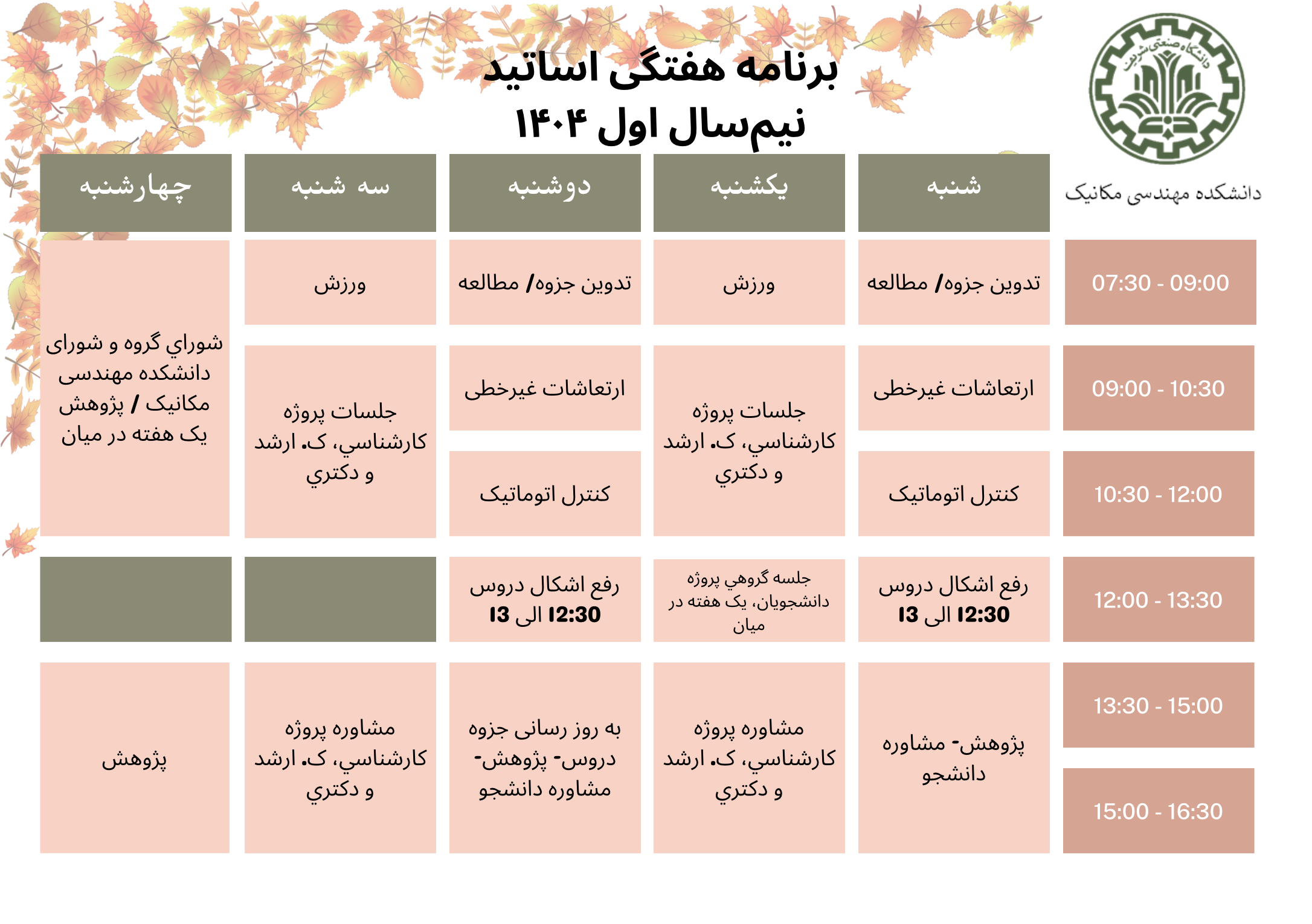 نام آزمایشگاه: سیستم های کنترلی، شماره اتاق آزمایشگاه: 316، شماره تلفن آزمایشگاه: 66165586(021)