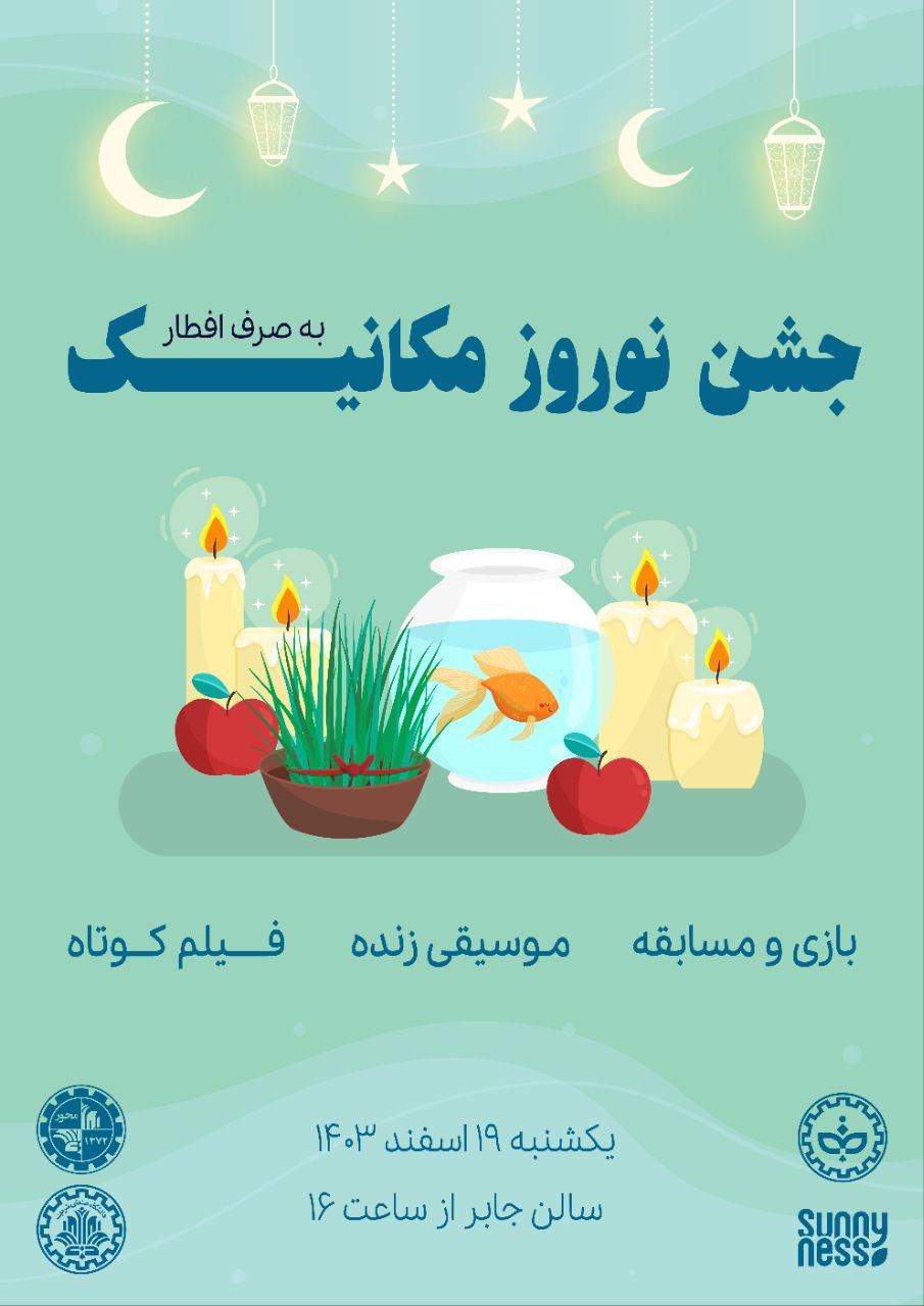 جشن نوروز مکانیک به صرف افطار یکشنبه 19 اسفند ماه 1403 ساعت 16 سالن جابر