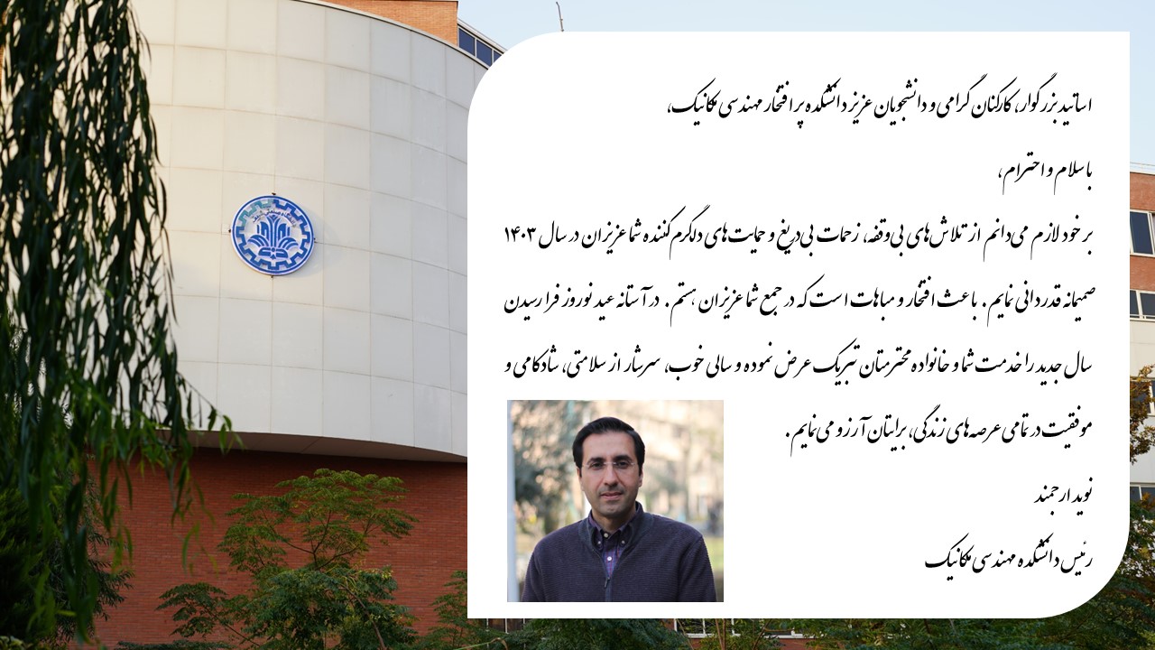 پیام تبریک نوروز ریاست دانشکده مهندسی مکانیک