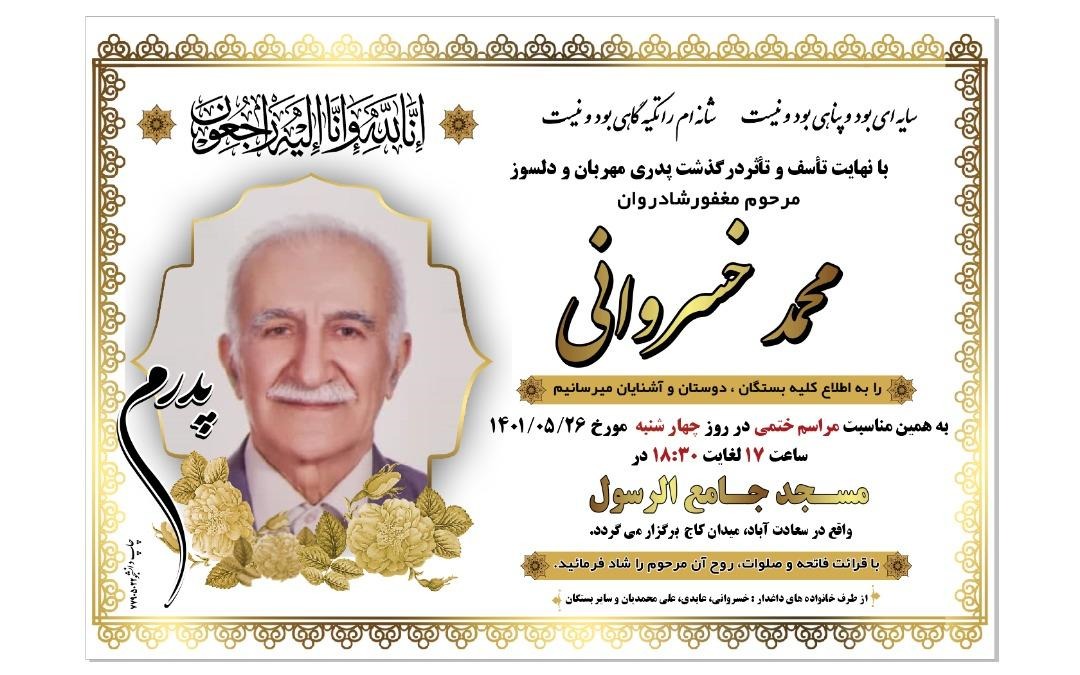 تسلیت درگذشت پدر عزیز مسئول محترم آموزش دانشکده مهندسی مکانیک تسلیت درگذشت پدر عزیز همکار گرامی، سرکار خانم خسروانی تسلیت درگذشت پدر عزیز همکار گرامی، سرکار خانم خسروانی درگذشت مرحوم مغفور، پدر...