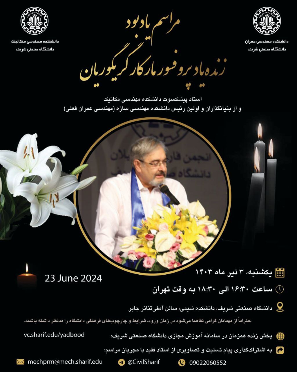 یادبود زنده یاد مارکار گریگوریان دانشکدههای مهندسی مکانیک و مهندسی عمران دانشگاه صنعتی شریف میزبان مهمانان گرامی در مراسم یادبود زندهیاد مارکار گریگوریان میباشند. این استاد گرانقدر از اساتید...
