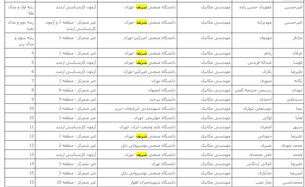 المپیاد دانشجویی مکانیک در تسخیر دانشجویان شریف اخیرا نتایج المپیاد دانشجویی ۱۴۰۲ در رشته مهندسی مکانیک اعلام شد. بر این اساس رتبههای اول و مدال طلا، رتبه دوم و مدال نقره، رتبه چهار و رتبه پنج...
